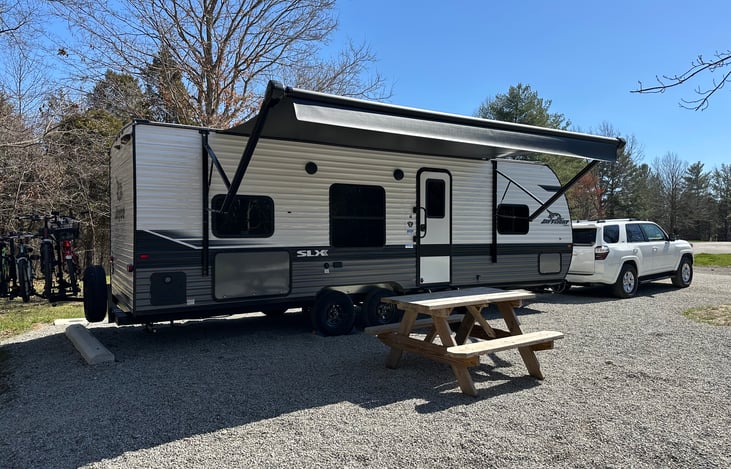 This camper is absolutely beautiful and was perfect for our family weekend! So many amenities, comfy beds, lots of storage and fridge space.