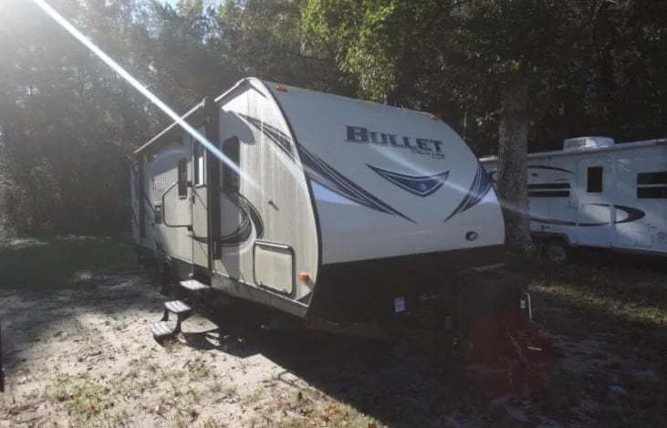 Embark on your next outdoor adventure with our 2018 Keystone RV Bullet 272BHS. Perfect for families and groups, this spacious and modern travel trailer offers comfort and convenience on the road. Sleep peacefully in the master bedroom with a queen-sized bed, and make use of the double bunk beds and convertible sofa, accommodating up to ten travelers.