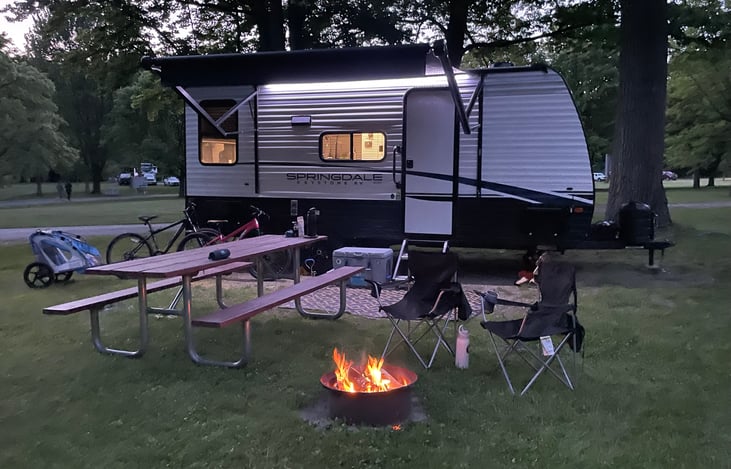 Welcome to your home away from home in a brand new 2023 Springdale mini! This trailer requires minimal set up and is light enough to be pulled by either an SUV or midsize truck. At only 21 feet, this trailer can fit almost anywhere but is spacious enough on the inside to accommodate up to four people.