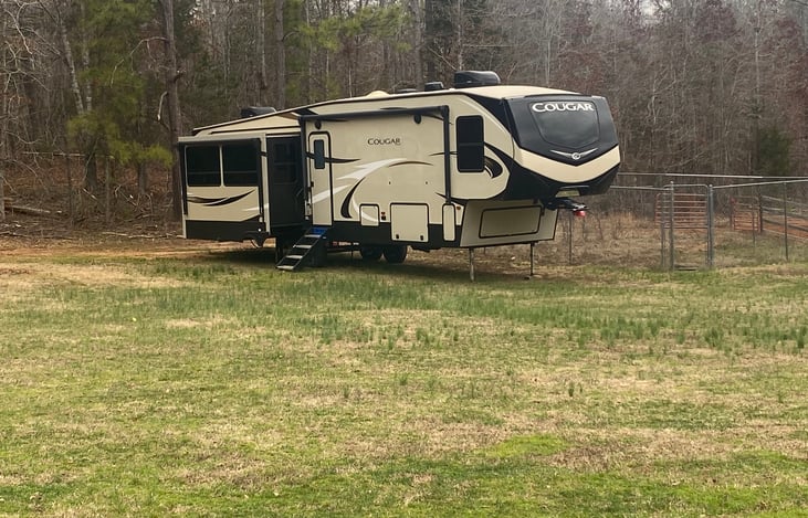 You'll find everything you need and more in this beautiful Cougar. Whether in a campground or remote, this unit has all of the latest features. A fencing system that encloses the entire rear awning area for the dogs lets the puppies enjoy the sites. Check us out!