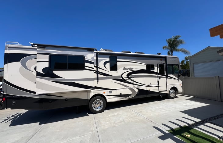 2014 Fleetwood Bounder, full amenities, 1 queen bed, 2 convertible sofa beds. Full range stove and kitchen ware upon request. 2 bathrooms, washer dryer, central heating and air conditioning, outside entertainment system tv and stereo, Bluetooth hookups. DVDs player. Electric fireplace. Surround sound. Large ground cover for use.