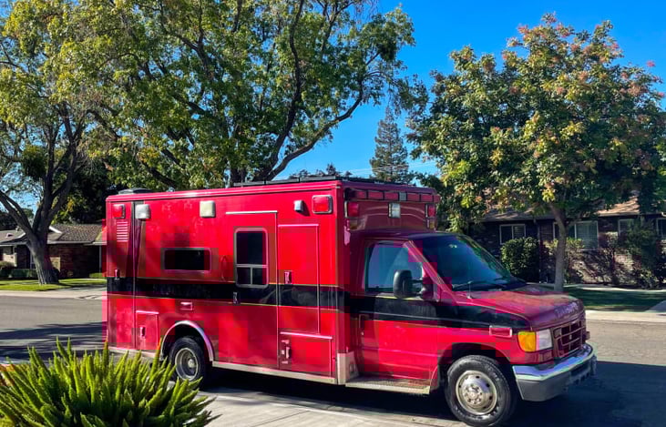 As an ambulance there is tons of storage inside and out! There are interior storage compartments, exterior lockers, and storage under the bed.