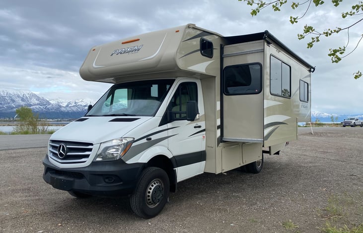 6 seatbelts. Sleeps 6. 14 MPG. Mercedes Sprinter cab and engine. Auto-leveling so it's leveled by a push of a button. This motorhome is just the right amount of luxury. Super slide to make this a very roomy motorhome. And it still fits in one parking spot! Under 12' tall and under 8' wide. This motorhome is built perfectly.