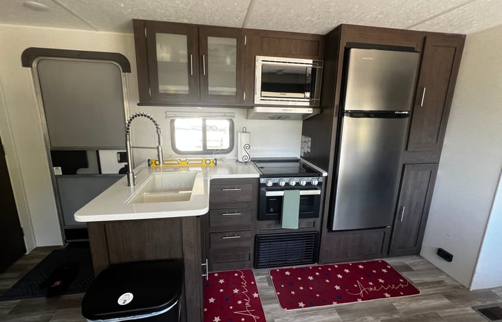 This 2 bedroom 1 bathroom travel trailer allows for so much room. Your family will be able to enjoy your vacation while feeling right at home. The outdoor kitchen, stereo, and grill make cooking and entertaining so much fun! Let us handle the hassle of delivery, setting up and taking down.