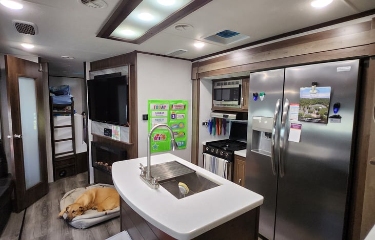 This is a fantastic RV! Kenny was a great communicator and excellent at walking us through the unit and explaining how to use everything . All of the accessories provided were top notch and easy to use. Everything we needed to have a safe, fun camping experience there. Had a fun time watching the Olympics with family on the outdoor tv at night.