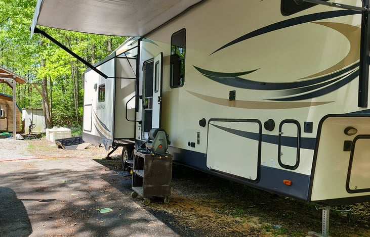 I will haul to campgrounds within a 30 mile radius of Union Maine. Will consider longer hauls for longer stays. 42 ft 5th wheel camper trailer with room to sleep 8! You will need atleast a 3/4 ton pickup with a 5th wheel attachment to be able to haul this. This is a well maintained and clean 5th wheel camper. Comes with everything you need to enjoy your time in the outdoors.