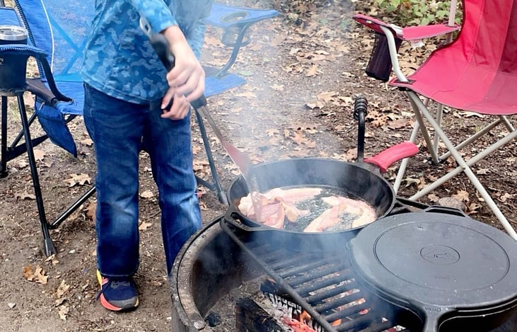 Plenty of room for families! Putting bunk beds in the back of the toy hauler is perfect if you’re camping with kids. King size bed for mom & dad! Everything at your fingertips-including a s’mores kit! Thank you Chris!
