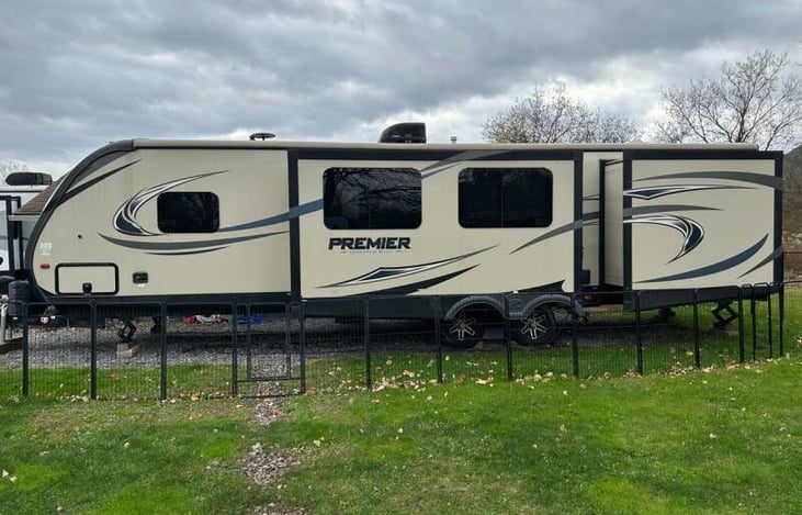 Experience luxury camping with our 2018 Keystone Bullet Premier 34BHPR. Perfect for families or groups, this spacious RV features two bedrooms, a full kitchen with modern amenities, a cozy living area with entertainment options, and a bathroom with a shower. With its sleek exterior design and comfortable interior layout, you'll enjoy both style and functionality on your road trip adventures.