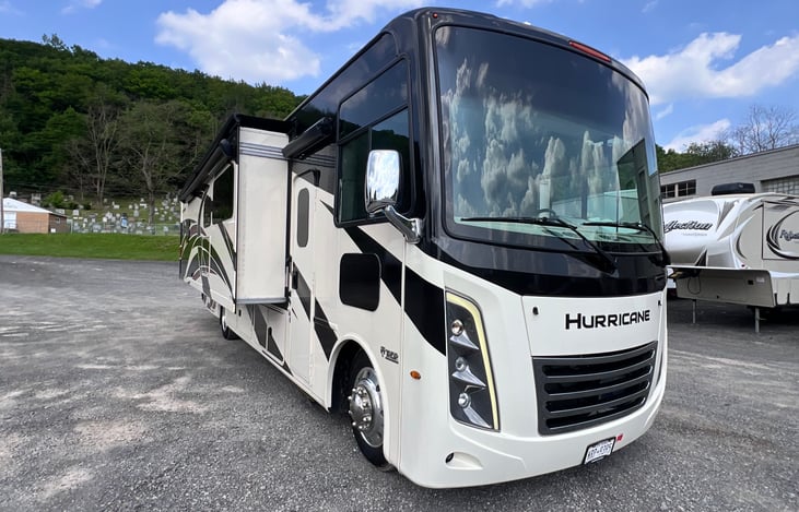 Embark on your ultimate road adventure with the 2022 Thor Motor Coach Hurricane 34R. This spacious and luxurious Class A motorhome offers unparalleled comfort and convenience. With its well-appointed interior, including a fully equipped kitchen, cozy sleeping quarters, and modern amenities, you'll feel right at home on the open road.
