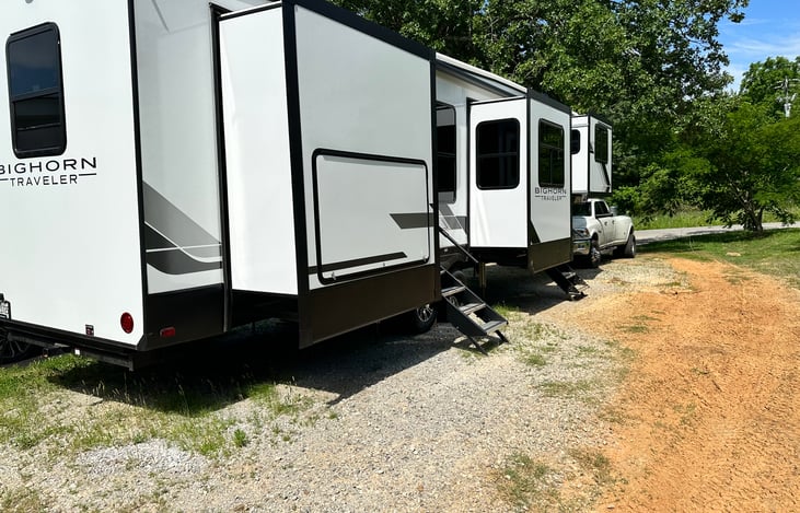 Bring your groceries and your beverages and spend the weekend with us in our 2024 bighorn front living 6 slides with a king bed and on demand hot water heater. Let’s make memories and enjoy the summer.