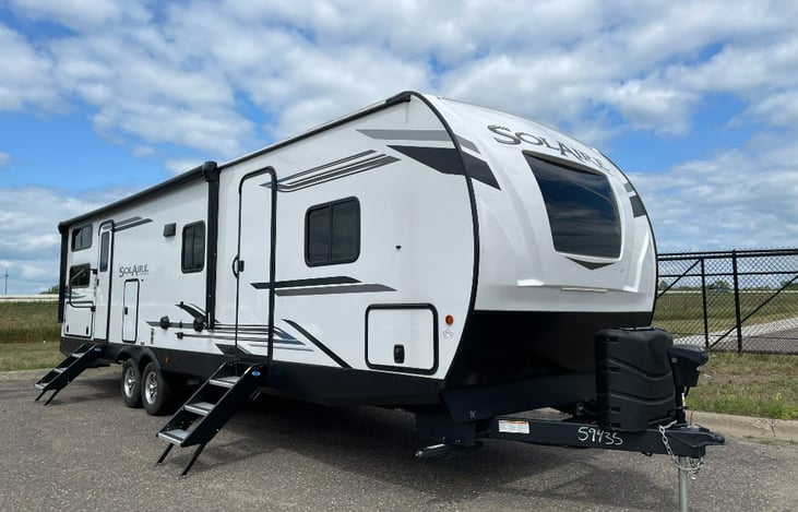 Are you ready to elevate your camping experience? Look no further than the 2023 Palomino - Solaire Ultra-Lite 315 DQBH. This exceptional travel trailer is designed to provide you with all the comforts of home while you explore the great outdoors.