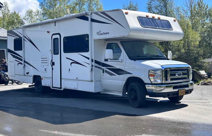 Welcome to our class C RV. At 29 feet, it is the perfect size to still maneuver easily while providing plenty of space for your family’s Alaskan adventure. There is one slide out in the living area to provide extra space. It will comfortably sleep 5 adults and one child or smaller person.