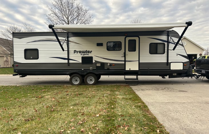 "The Prowler" Hello this is our Very Nice 34 Ft Camper with one large slid out. It has a very spacious floor plan with a modern look and bunkhouse, comfortably sleeping 8 to 10 guest. We are a full service Camper Rental Company. We deliver and setup your camper, then at the conclusion we pick the camper back up, all you have to do is show up and enjoy camping!!