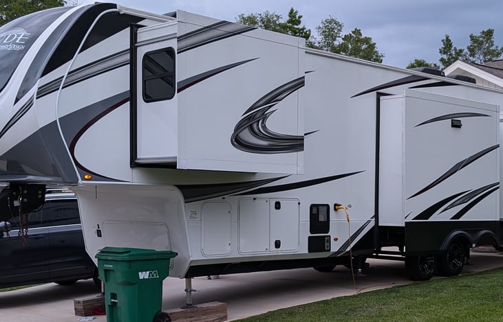 2023 Grand design with all the possible features you would need to have a great vacation! King size master with it's own bath and a bunkhouse with it's own bath. That's right, two bedrooms TWO bathrooms! Rear entrance into the bunk room. Lots and lots of storage! It's an arrive and stay fifth wheel.