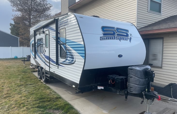 The perfect weekend getaway trailer, take your ohv and enjoy a weekend of playing, can be towed with half ton truck, bumper pull, automatic jack, hand stabilizer jacks, everything works great, has many great amenities. Look forward to meeting you and helping you with your weekend or weekday getaways! Thanks for your interest.