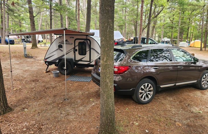 Our 2021 Free Solo is a cozy and cute teardrop trailer that is easy to tow. This trailer is good for a quick weekend getaway or a longer adventure. She is conveniently small but packed with many amenities to make your trip more enjoyable. This camper would be great for exploring Northern Michigan or the UP and could be used from spring through fall.