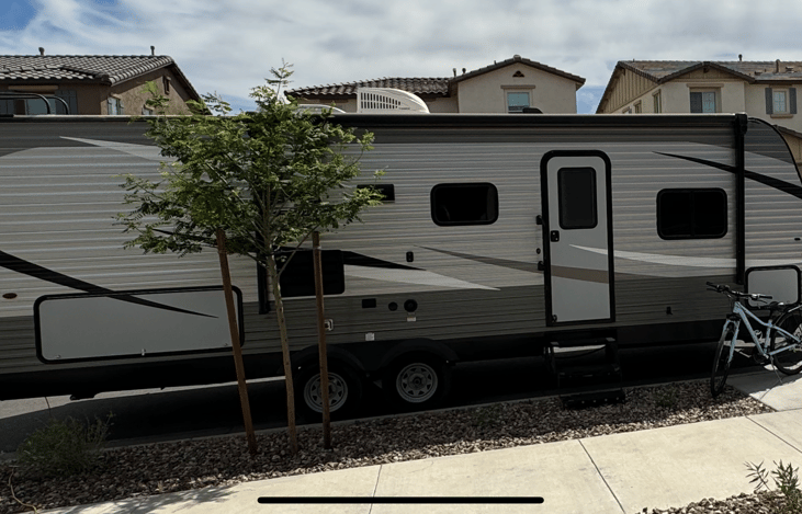 Everything you need for the perfect camping trip! This fully equipped Jayco features a queen bed, full-size bunk beds, and a dining table to bed conversion which can easily sleep 6-8 people. With an indoor AND out door kitchen, indoor AND outdoor shower, there is plenty of space to be comfortable and spread out.