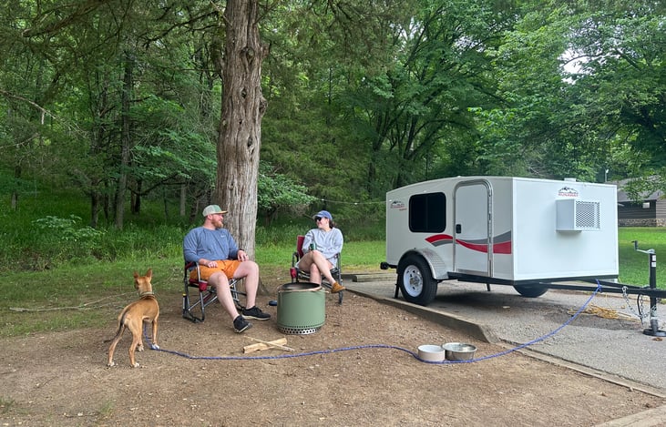 We’re Steph and Joe. We love traveling and exploring, usually with our little pup. Our little camper lets us do more of that, avoid all the tent hassle, and sleep in comfort so we’re fresh for hiking, biking, or paddling!
