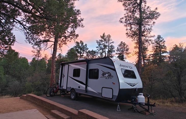 The Cute and Cozy Jay Flight flew us through Southern Utah. It never missed a beat. The rig was clean and comfortable and thanks to the awning we were spared any discomfort from an unforeseen rainstorm. Wouldn't hesitate to rent again.