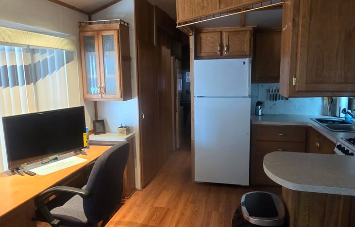 Park Model in Canyon Lake RV Park in Palmhurst (Mission) Texas. Review website canyonlakervresort.com for amenities of the park. The model has a queen bed and a roll out futon to sleep four adults. Canyon Lake RV Park has many year-round residents and is a 55+ resort. The resort is typically full with "winter Texans" from October to March.