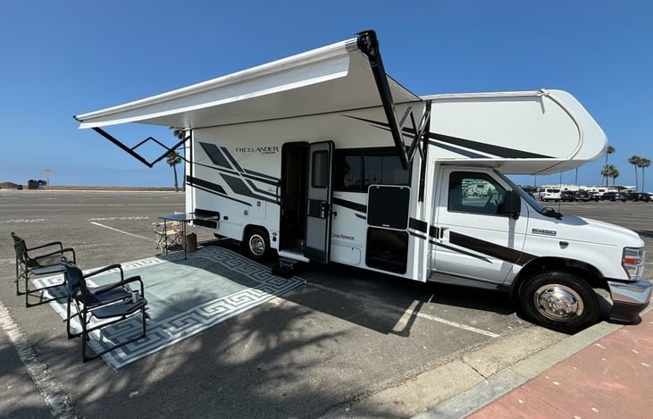 Our 2021 Coachmen Freelander in excellent condition is the perfect size for a family or a small group of friends to enjoy a vacation. This class C RV is just the right size at 27 ft allowing first time renters to feel comfortable while driving to their destination. The RV comes with two slide outs.