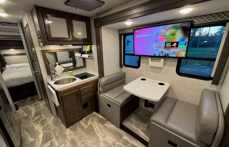 Experience the open road in style with our luxurious Mercedes Sprinter Thor Quantum Motorhome! This spacious and modern RV is perfect for families or groups looking to explore the great outdoors without sacrificing comfort. Easily sleeps 4 adults but could accommodate 2 smaller children in the convertible dinette bed and recliners/couch(up to 6 people total).