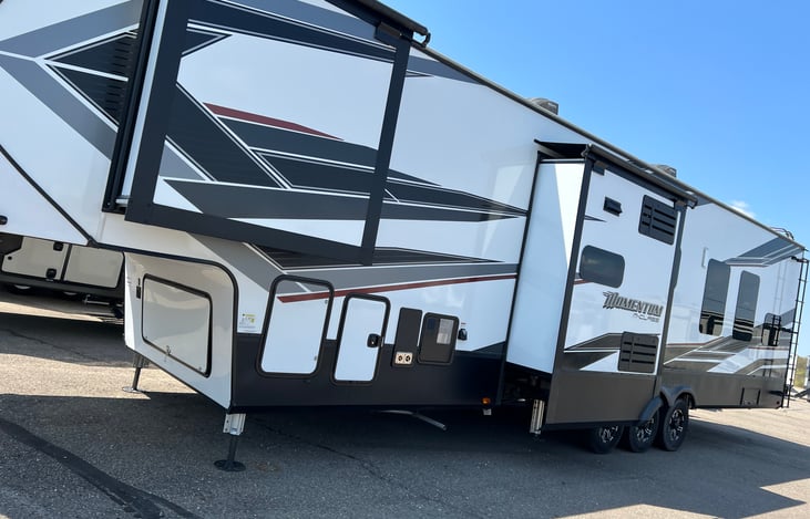 - Please confirm your site will accommodate this camper. It's 43 foot with 3 slide outs and 2 awnings.
