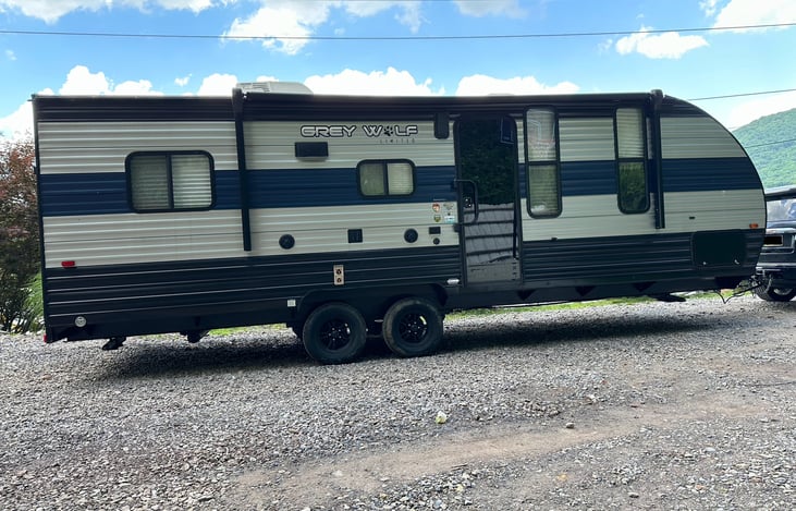 2021 Limited Edition Grey Wolf with Chef Kitchen Upgrade, Campfire Package, Solar Package, power awning, full size 12V refrigerator, back door ramp/outdoor patio, 52 gallon fresh tank, and much more! Also, a new upgraded green tea memory foam short queen mattress in the bedroom with mattress protector for added comfort and peace of mind! Everything you need to have a fun adventure!