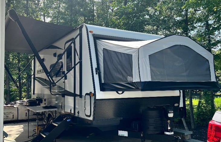 AKC Registered!! Brand new 2023 Flagstaff Shamrock 21SS. Barely used. It has two hybrid queen beds which gives you that "tent" feel on crisp cool nights. Our dogs travel with us when we go, so yours are welcome as well! Two nice electric recliners for relaxing with electric lumbar supports.