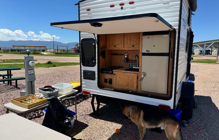 I Live in Colorado Springs, I thought I would share my Trailer. I love it, tows easy, it’s just the right size for a two people or two people in a child. It has a toilet pretty much everything you need. 3.5 in.³ refrigerator and freezer. Pure joy