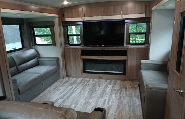 After a fun filled day of enjoying your outdoor activities, come back and relax in comfort in one of 2 reclining Theater chairs with vibrating massage, and heat. Turn on the 42" Hi Def 4K roku TV and watch a movie or a show, or just turn on the electric Fireplace w/heat and enjoy a quiet evening.
