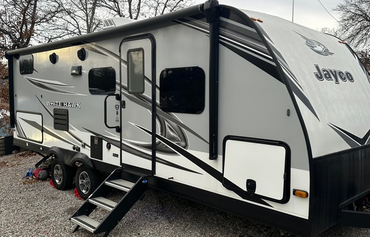 Discover the perfect getaway with our 2021 Jayco White Hawk 24MBH, designed to make your camping experience unforgettable. This spacious RV comfortably sleeps up to 7, offering ample room for family and friends. Enjoy the convenience of full hookups and take advantage of the included kayaks for a serene paddle on our quiet, picturesque lake.