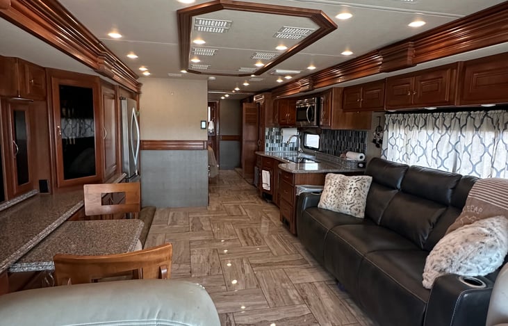 Luxury! With 2 bathrooms! Full fridge! Very spacious inside with tons of storage inside and out to make sure nothings left at home! Motorcycle ramp and 8k lbs tow hitch!