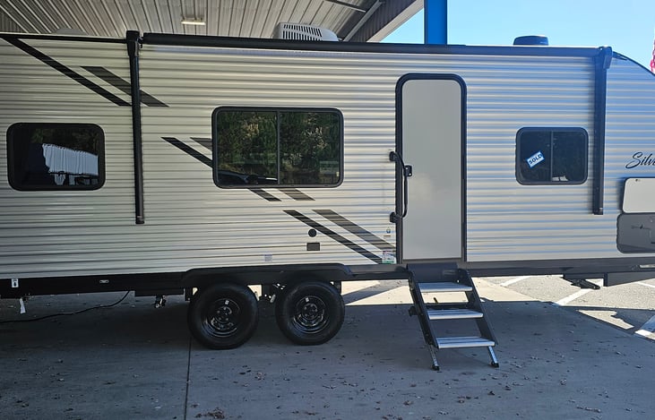 This cozy camper is includeds delivery and setup fee up to 50 mile range. Stocked with linens, utensils, and cookware. 8 person Rv rental with 5 beds.Unit has a Private King bed, Private bunkhouse, outside shower to wash off from sandy stays. Feel free to message for any questions, I'll be happy to help