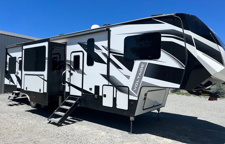 Experience luxury camping with our 2020 Dutchman Voltage 39ft toy hauler, designed to provide ultimate comfort during your adventure.