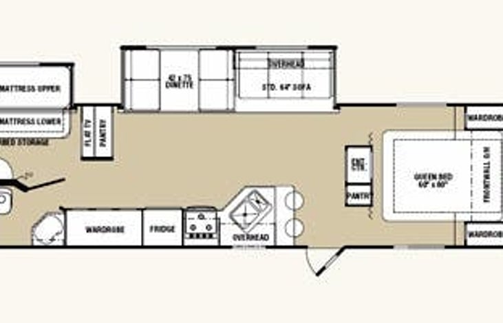 Thank you for choosing our travel trailer and we hope that you enjoy as much as we do! Our trailer has a queen master, a loveseat, table, 2 bunks, fold down loveseat and a table lounge that folds down to a sleeping area as well.