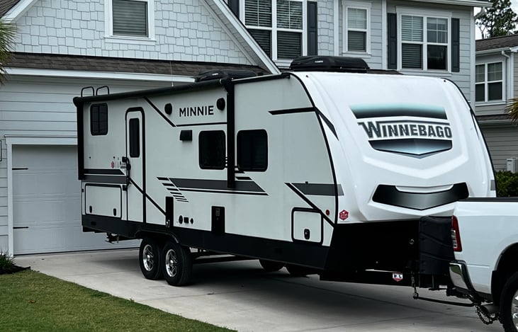 Looking for the perfect travel trailer for your next adventure in the Myrtle Beach area? Rent our 2021 Winnebago Minnie 2301BHS, designed for comfort and convenience! This well-maintained, family-friendly travel trailer sleeps up to 8 people and features a spacious interior with a private bedroom, full kitchen, full bathroom, and a slide-out for extra room.