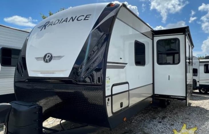 A travel trailer for the whole family! Plan your vacation in style with the Cruiser RV Radiance Ultra Lite. King bed w/ Private room. TV, A/C, Kitchen & more!