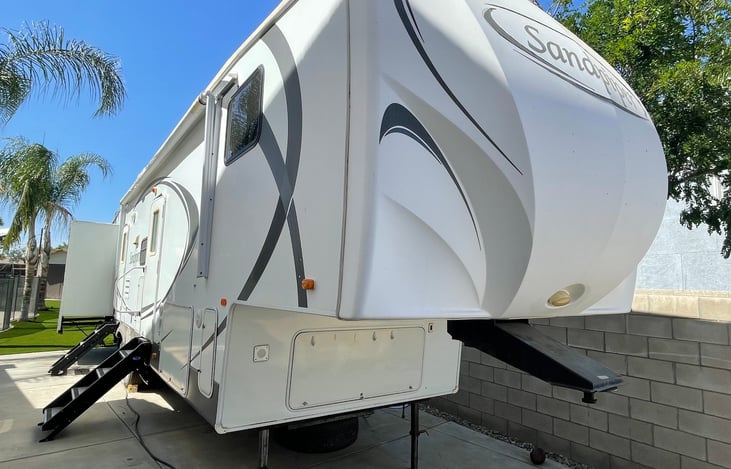 5th wheel can be both stationary or be delivered to most locations. It will be set in our driveway, with running water and electricity.