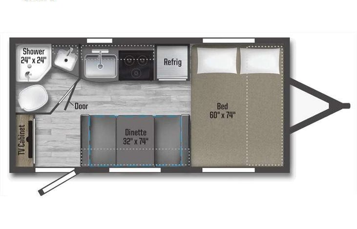 Modern amenities including King Wifi extender antenna + router (King smartphone app required), cell phone booster, TV with JBL sound system, solar panels, and more! Clean linens, towels, and dishes included. Propane tank w/ gas furnace, A/C, and electric refrigerator.