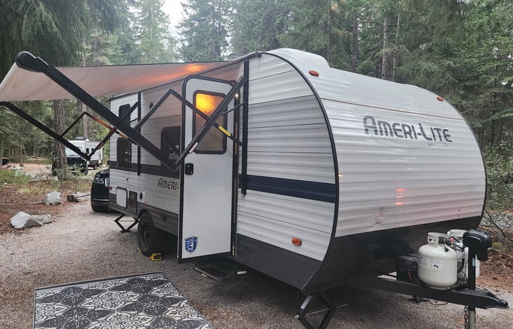 2022 Gulf Stream Amerilite- Our fully stocked travel trailer comes with everything you'll need for a getaway. Includes pots/pans, dishes, silverware, cooking utensils, marshmallow sticks, all bedding, towels, shampoo/conditioner and all other bathroom items.