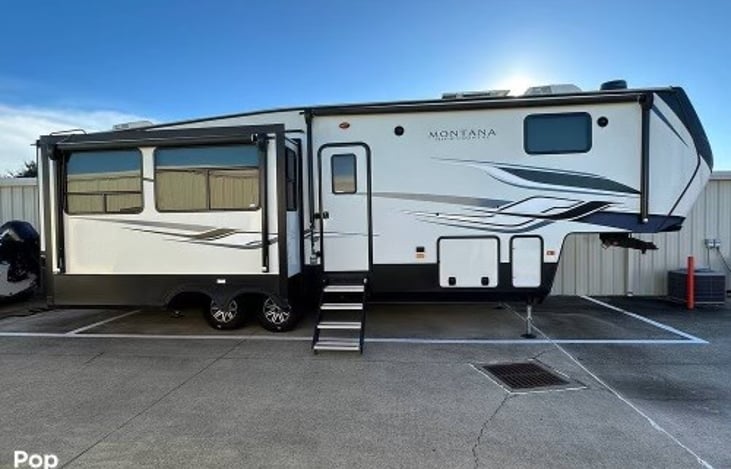 Glamp in style with our 2022 Keystone Montana High Country 295RL fifth wheel with 3 slides. Fully stocked and ready for anything. Camper has a spacious bedroom with queen bed and front cap window. Large bathroom with 12 gallon hot water heater. Fully stocked kitchen including pots and pans, plates, bowls, cups, silverware, Keurig coffee maker included.