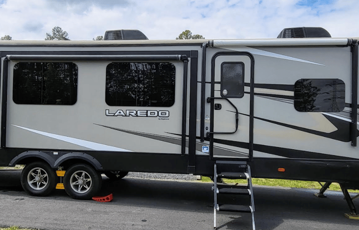 The Luxe Laredo is the perfect camper for an unforgettable weekend or an extended vacation! It is a spacious RV that comfortably sleeps 8 and offers a range of luxury features for your next adventure. With three slide-outs, it provides plenty of room to relax and enjoy.