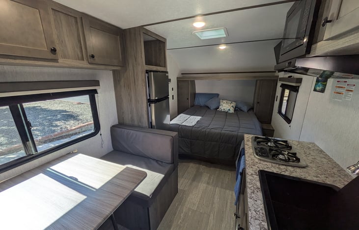 Rented this small camper months in advance for the ten days of Balloon Fiesta for me and my dog. Since I don’t have a truck, I had the camper delivered to my campsite. Everything was set up and ready when I arrived and we had a great time. Jennifer was easy to work with and the camper came equipped with everything we needed.