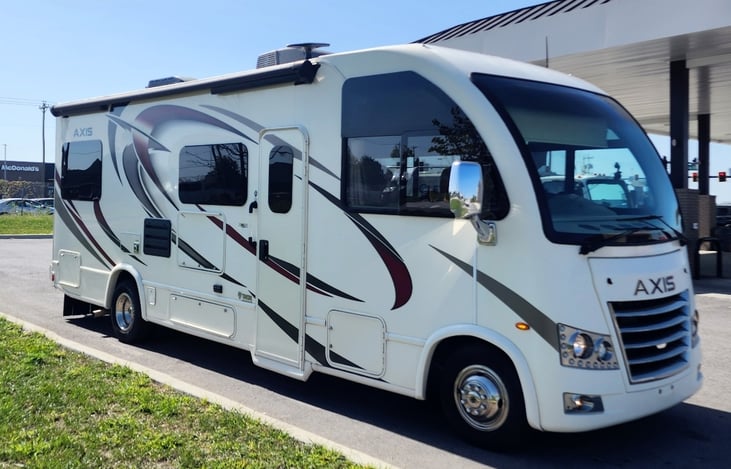 This mid-sized Class A 25' motor-home is ideal for both families or a small group, comfortably sleeping up to 4 guests.