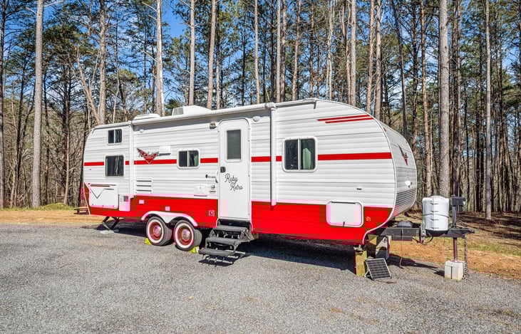 Ruby the Retro is a 27ft Riverside Retro travel trailer, with acute attention to detail. Recently renovated, this space includes new flooring, shiplap walls, an upgraded fireplace, mantle, and so much more!