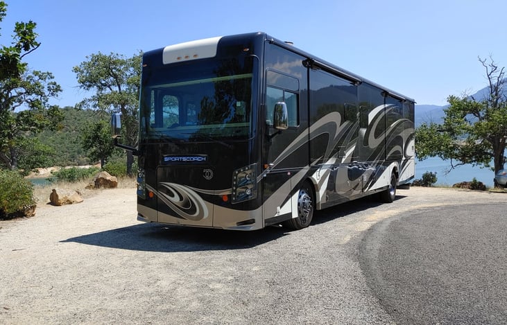 This Sportscoach Class A has 3 total slides, including 1 full-wall slide, which expands the entire RV from front to back!