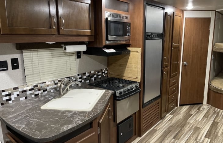 Our travel trailer is the perfect choice for your next adventure, fully stocked and ready to make your camping experience unforgettable.