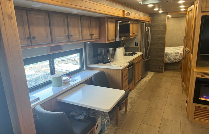 Very well maintained and very new, less then 15,000 miles , clean,3 tv’s , fireplace, king size bed, very nice rig.
