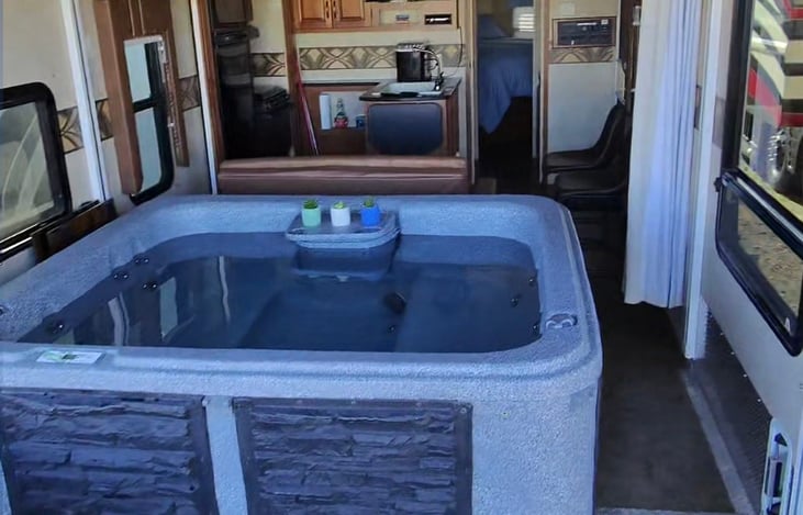 - This RV can NOT be transported with water in the hot tub. It must be filled and drained at the destination. If using the onboard generator the hot tub will need a portable generator($150 extra).